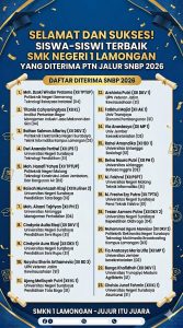 Kepala SMK Negeri 1 Lamongan menyampaikan apresiasi dan rasa bangga atas capaian tersebut. “Prestasi ini merupakan hasil kerja keras siswa, guru pembimbing, serta dukungan dari seluruh warga sekolah. Semoga ke depan SMK Negeri 1 Lamongan terus melahirkan prestasi-prestasi gemilang,” ujarnya.